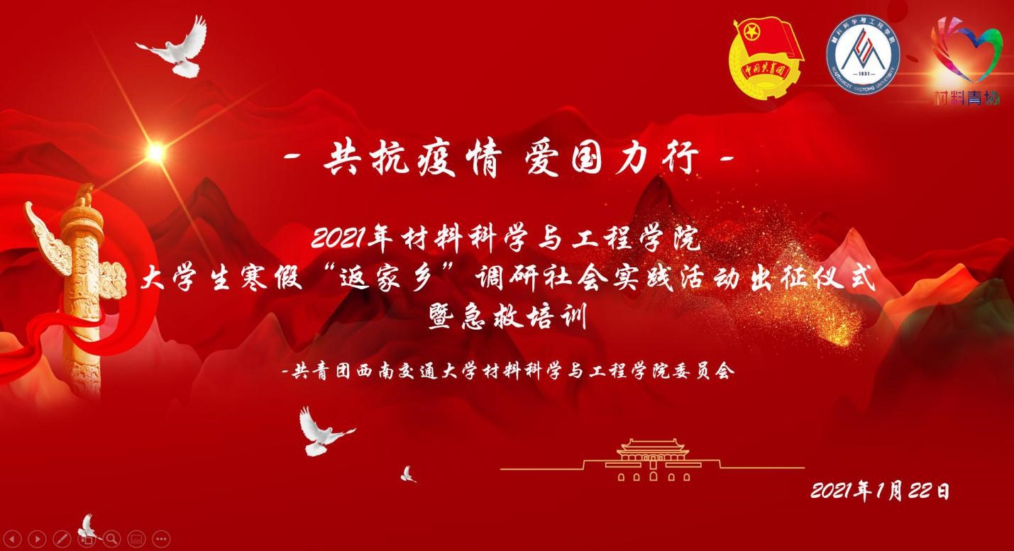 2021年1月22日,材料青协于19点准时举行了云会议“大学生寒假‘返家乡’调研社会实践活动出征仪式暨急救培训”,青协多名成员以及各实践队负责人参加此次会议。