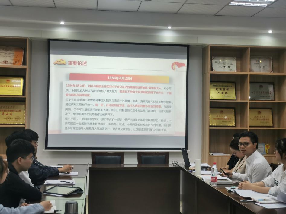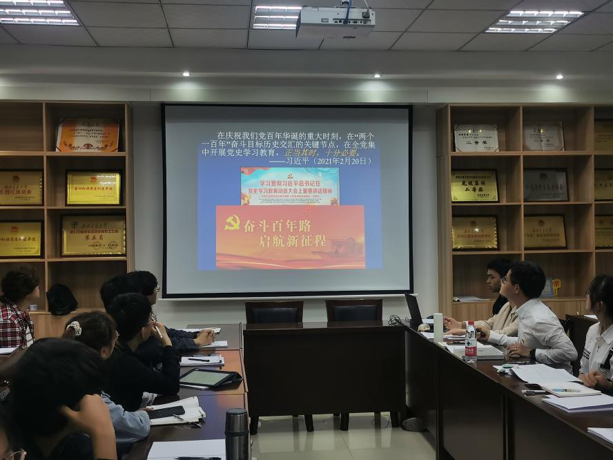 团课第一项:党史上的今天。为积极响应习近平总书记提出的“学史明理、学史增信、学史崇德、学史力行”的理念,黄德明分别从重要论述和党史回眸两个方面带领团员学习了党史上的今天,生动形象地讲述了秋收起义、井冈山会师等重要党史,让团员们了解到更多党的历史,更能明白革命成功的来之不易。