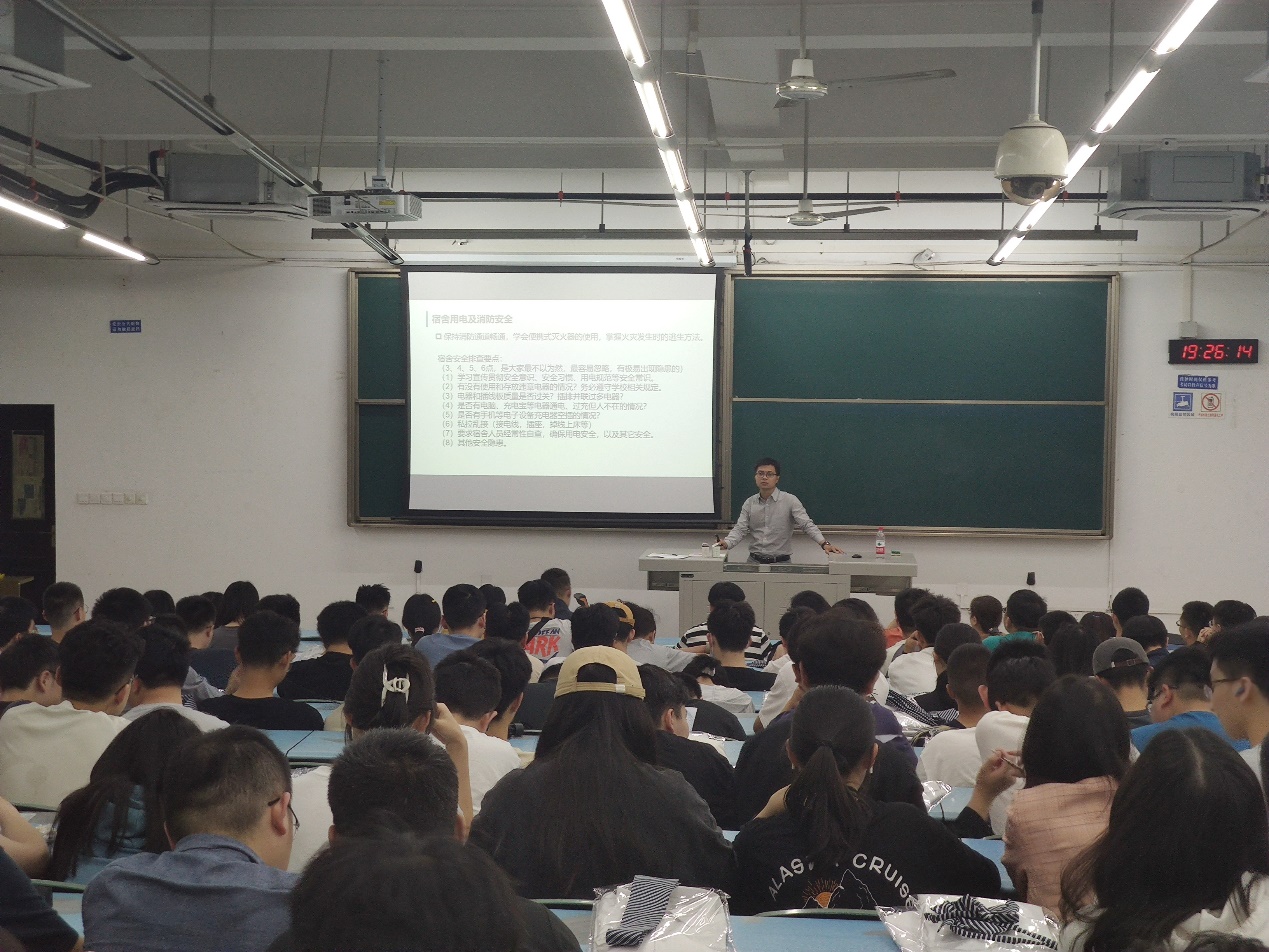黄德明老师提到了宿舍安全、防火安全和电信诈骗问题。首先,他着重强调了宿舍安全,以近期发生的事例,再次警醒同学们禁止使用违章电器,指出了宿舍可能存在的安全隐患,希望同学们引起重视,提高安全意识,提倡同学间互相监督、提醒;其次,他告诫同学们提高防火意识,学会消防器具的使用,养成及时发现并消除隐患的习惯,对自己和他人的安全负责;然后,就电信诈骗问题,他以近期学校发生的案例,说明了电信诈骗的常见形式和同学们的受骗诱因,提醒同学们学会克制诱惑,提高防范意识,保护人身安全和财产安全,并让同学们关注“熊猫反诈”微信公众号,以减少受骗风险和提高反诈能力。