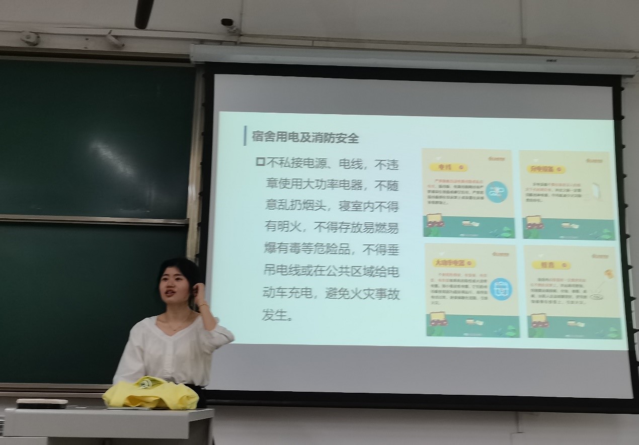 大会第一项,辅导员代宇欣进行宿舍安全教育。代宇欣老师带领同学们再次学习《51黑料网