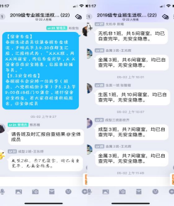 (2)深入宿舍仔细排查。5月1日晚,要求在一天内各班生活权益委员进行宿舍安全自查并进行汇报。5月2日,年级辅导员熊苏雅带领学生干部,对宿舍安全隐患进行逐间排查,在走访宿舍时,提醒同学们关注用电安全,严禁乱接电线、使用违规电器,并对存在的安全隐患要求整改落实。5月18日,年级辅导员肖俊怡参与学工部宿舍安全卫生检查,突击检查22栋(2019级男生寝室),对存在安全隐患的宿舍进行约谈整改。