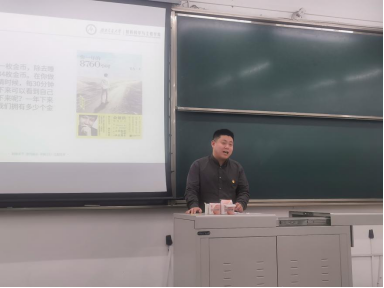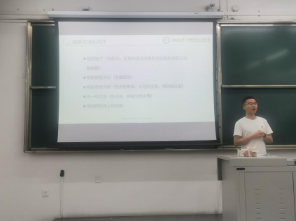 最后孙诗然同学给大家分享了班级学风建设的方法,如建立自习奖惩制度、建立学习互督小组以及为进步学生设置奖励基金等,并在讲到时间管理时为同学们带来了二十四枚金币法、四象原则法等珍惜时间的方法。在分享尾声中,他这样说到:“要做一个有强烈目标性的人,不能做一个强烈目的性的人,要明白自己为了什么而努力,为自己热爱的事去付出。”