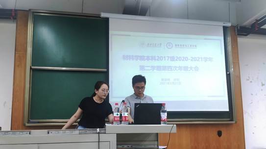 为了确保2017级学生毕业相关工作的有序开展,保障学生顺利毕业,材料学院于2021年5月31日19:00在犀浦校区X4352召开了本科2017级2020-2021学年第二学期第四次“毕业离校”专题年级大会,2017级全体同学参会,2017级辅导员黄德明、许欢出席并主持了会议。