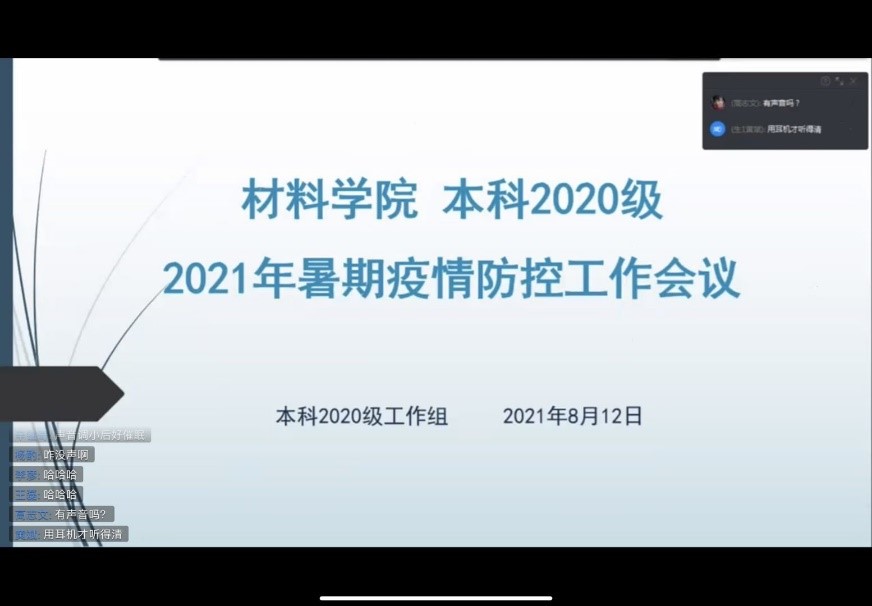 为落实学校、学院关于暑期学生疫情防控工作要求,2021年8月12日下午4点,材料本科2020级召开暑期第一次年级大会。辅导员老师郑纪伟、杨婷,以及2020级全体学生300余人参加大会。