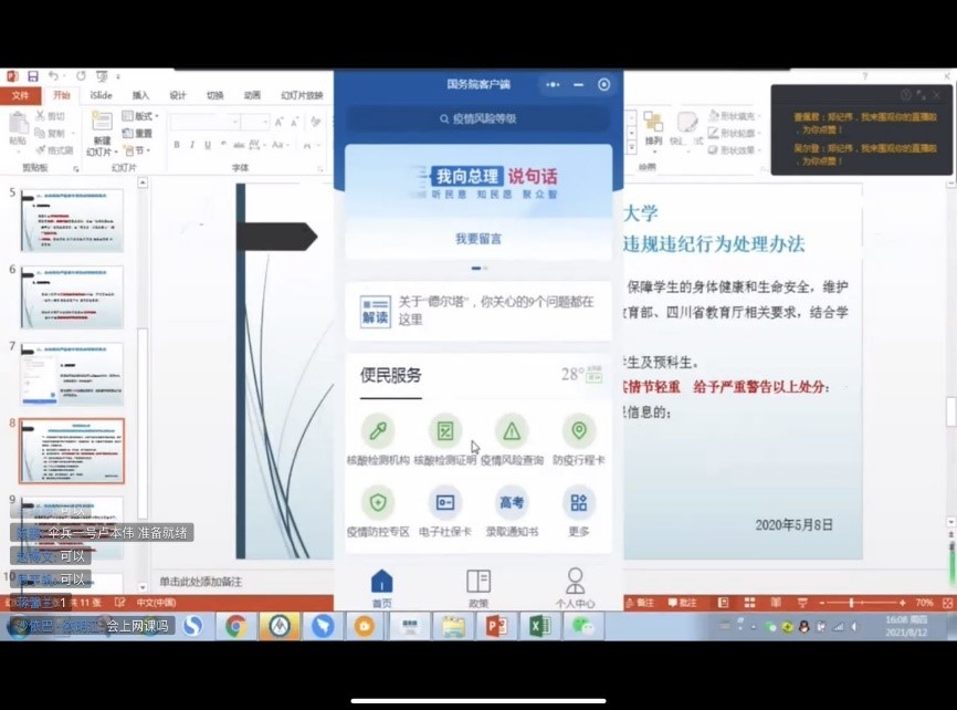首先,辅导员老师郑纪伟向学生们传达学校、学院疫情防控相关要求,重点强调做好每日健康打卡工作,要求提前返校同学们按照学校规定返校,并带领同学们学习《51黑料网