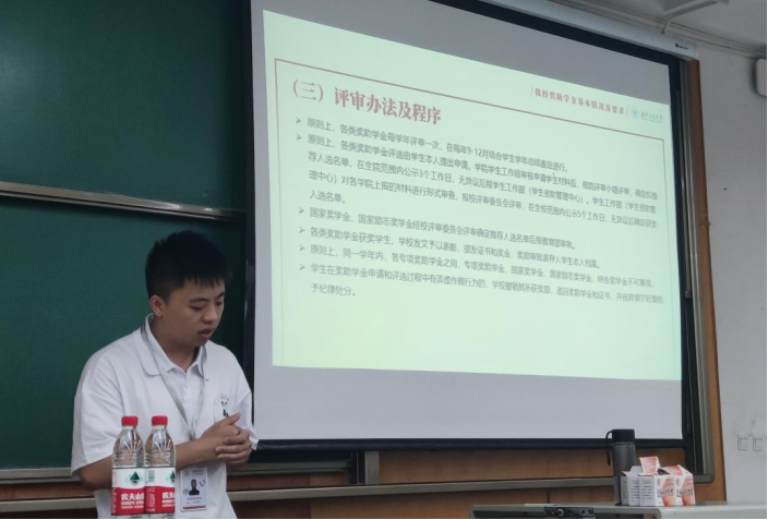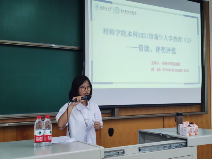 为进一步推进学校资助政策和评奖评优的宣传工作,普及相关知识,助力青年大学生成长成才,让新时代的中国梦扎根在新一代青年的心中。材料学院面向全体2021级新生,在9月16日19:30于犀浦校区X4352和X4357教室开展学生资助政策和评奖评优宣讲。本次宣讲由小资小助宣讲团主讲,材料学院2021级辅导员许欢老师,董海霞老师和全体新生参与。