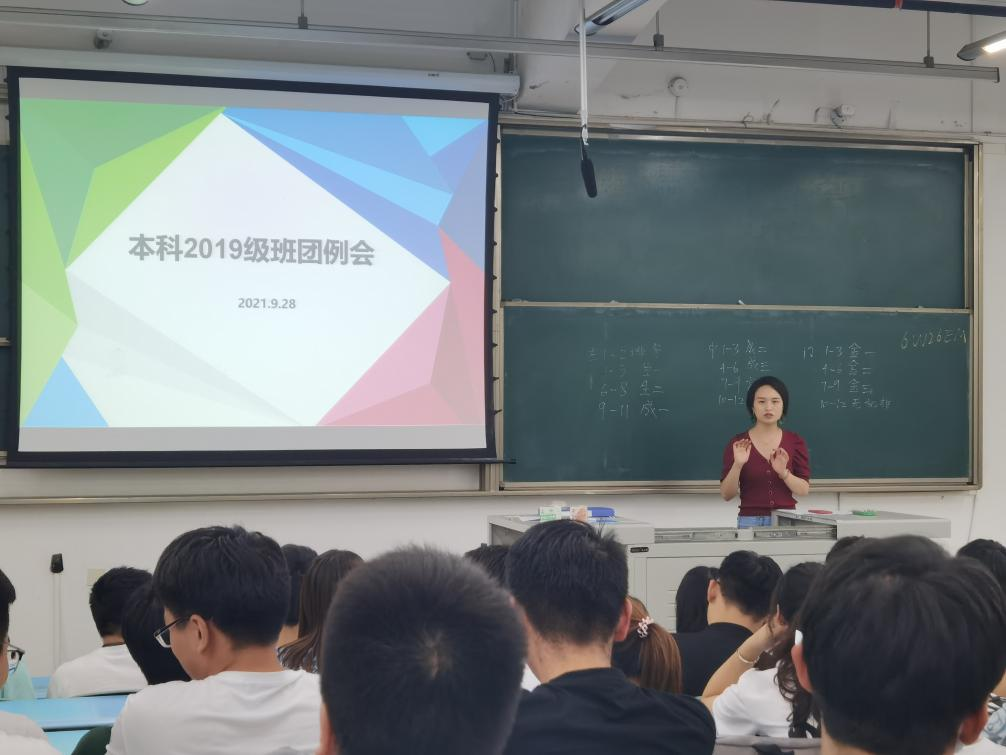 2021年9月28日晚20:10,材料学院本科2019级在X2321召开2021-2022学年第一学期第一次班团例会,辅导员老师熊苏雅、邓文婷,以及材料学院本科2019级全体班委参会,此次大会主要围绕预防电信网络诈骗和生涯规划这两个方面开展。