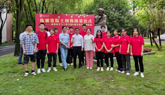 2021年9月25日星期六上午10:00 材料六班团支部十一位同学参加了陈能宽院士铜像揭幕仪式,学习陈能宽院士“材料报国”的精神。本次仪式分为生平介绍、铜像揭幕、学生和教师代表发言、党委书记王顺洪致辞。在仪式结束后,六班同学一起探讨了铜像的内涵,并合影留念。