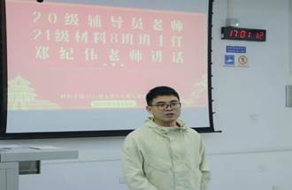 2021年10月14日15:50,本科2021级材料7班、8班团支部在X2216教室联合开展“请党放心,强国有我”主题团日活动。材料学院团委书记黄德明老师、团委副书记许欢老师,2020级辅导员、材料8班班主任郑纪伟老师应邀参加本次活动。