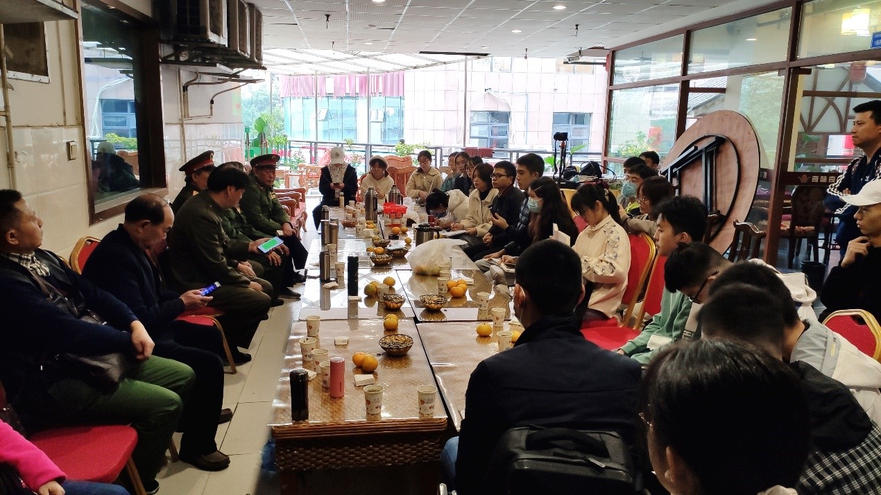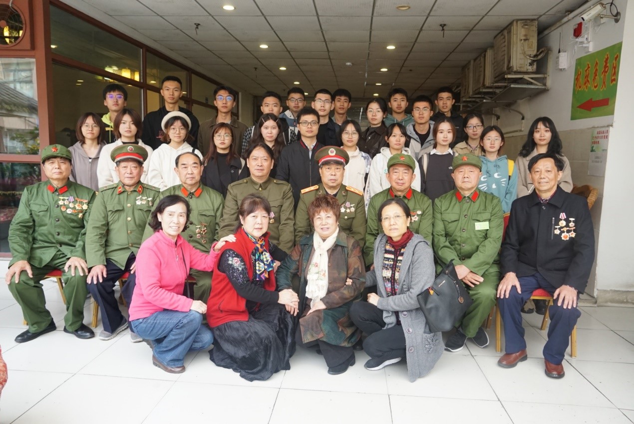 2021年10月30日上午,西南交大材料学院组织“红色笔记”老兵寻访项目组的成员前往成都市成华区探访杨定荣、贺成功、邓祖国、全再常、张永辉、陆世军、刘太富、史利坤八位对越自卫反击战的参战老兵。通过组织学生深入基层、走进社区,创新开展党史学习教育,与老兵交流座谈,开展“一堂生动鲜活的党(团)课”,强化爱国主义教育,筑牢青年信仰之基。