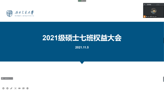 2021年11月5日,材料学院2021级硕士7班,通过腾讯会议的形式开展权益大会,班级全体成员积极参与,无缺席人员。