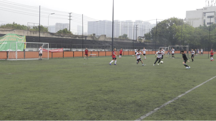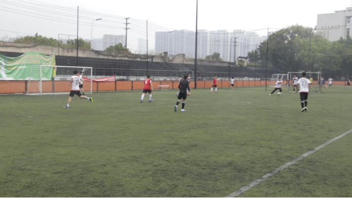 尽管天公不作美,九里校区飘着细雨,但仍阻挡不了材料学院师生对足球运动的热爱。在比赛开始前,选手们一一握手,各队的队员们满怀激情,有序地热身并且相互练习传切配合,为比赛积极做着准备。