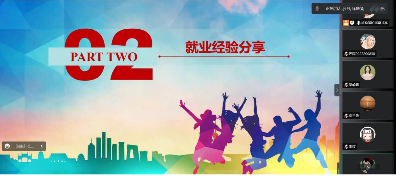 接着,梁喻嘉从专业科学的角度对职业生涯规划进行了讲解,从理论指导,结合毕业生的实际就业情况展开论述,提醒同学们及早做好职业生涯规划,在当下就业形势不是特别乐观的情况下应该要把握好机会,理性对待择业。罗丹向新生们介绍了职业生涯的概念,鼓励大家明确自己的人生发展方向,提醒要提前做好准备、做好规划,并通过实际案例分享了就业经验,对未来职业选择进行了指导,希望大家能够掌握现在、看到未来。