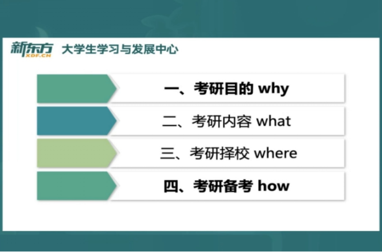 叶果老师从“考研目的”“考研内容”“考研择校”和“考研备考”四个方面为同学们详细地介绍了考研策略。他着重对近几年各大高校的分数线进行分析比对,帮助同学们明确如何根据自身实际情况选择考研目标院校,并耐心解答了同学们的疑惑和问题。
