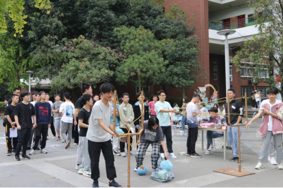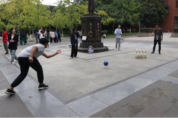 在游园活动中,两个年级以专业为单位,由同一年级专业的各班共同主办一个趣味活动,并为参赛同学精心准备了小礼品。趣味游园活动娱乐性强,门槛低,每个同学都能参与其中,享受活动的乐趣。伴着欢快的音乐,同学们穿梭于各个活动之间,时不时爆发出一阵阵欢声笑语。游园活动得到了学校党委学生工作部老师们的关心和支持,为学院提供了活动指导意见和部分道具。