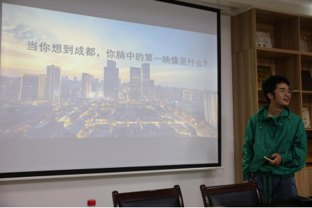 班会在欢声笑语中开始,同学们喝着奶茶,听着第一组发言的成都同学们分享这座城市的故事。之后,同学们依次向大家讲述自己家乡的趣闻。一方水土养一方人,来自全国各地的同学们相聚一堂,谱写的正是属于中华民族的共同人格。