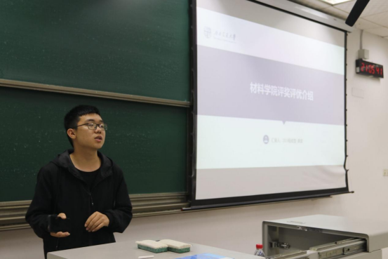 为了使本科2022级新生了解学校评奖评优情况,贯彻国家政策,促进德育教育发展,明确学习目标,合理进行未来规划,激励同学们积极学习专业知识,营造良好班风学风。2022年10月28日,材料学院本科2022级辅导员王誉静、罗莉邀请到了2019级学生龚波在x1215、x1315教室为大一新同学讲解了学校、学院系列评奖评优管理办法,并从操作的层面帮助同学们理解学院“三级评审、三级公示”的评奖评优实施办法。