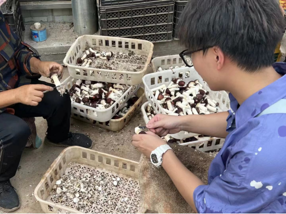 图4 队员在食用菌公司体验处理赤松茸