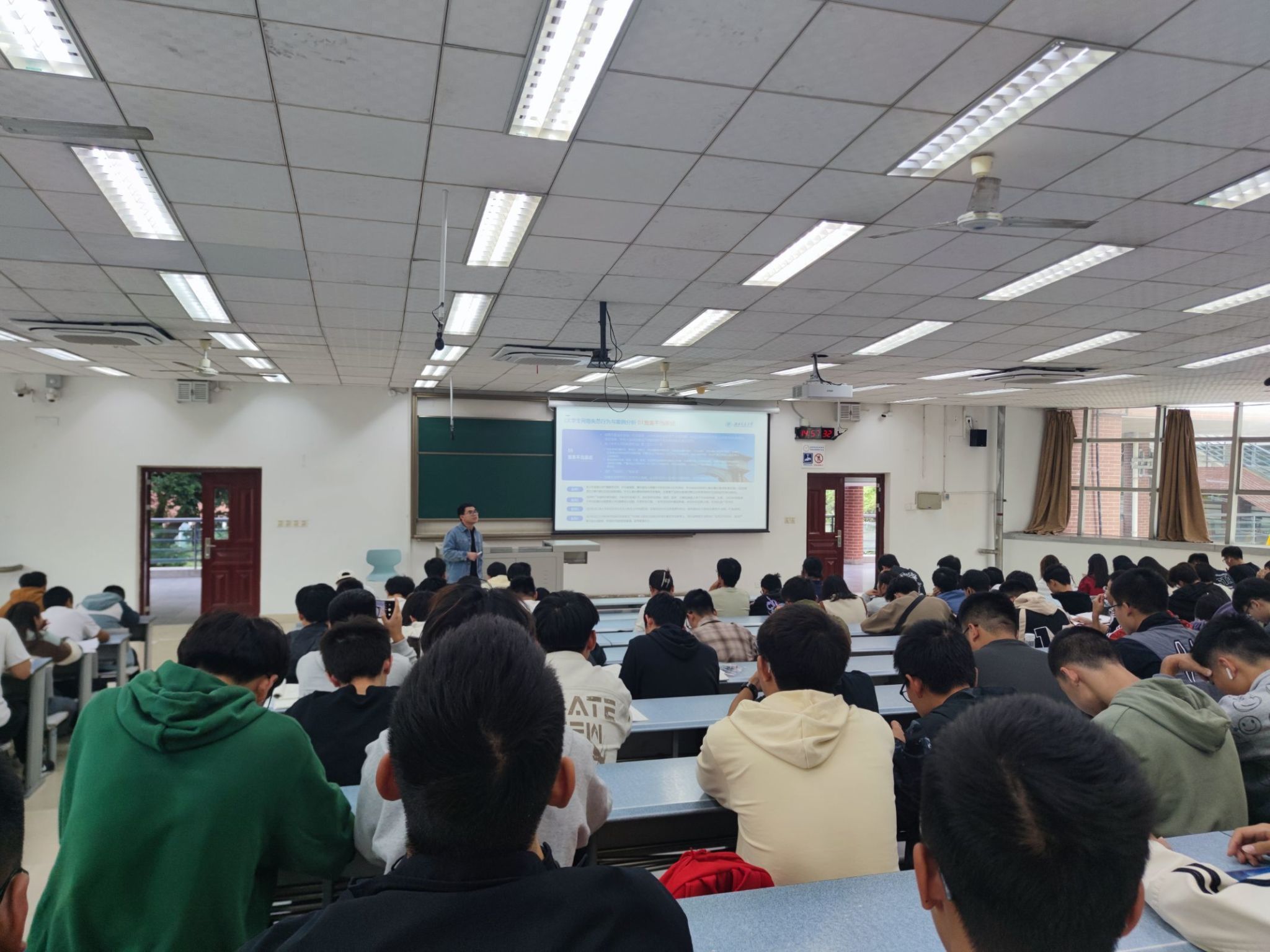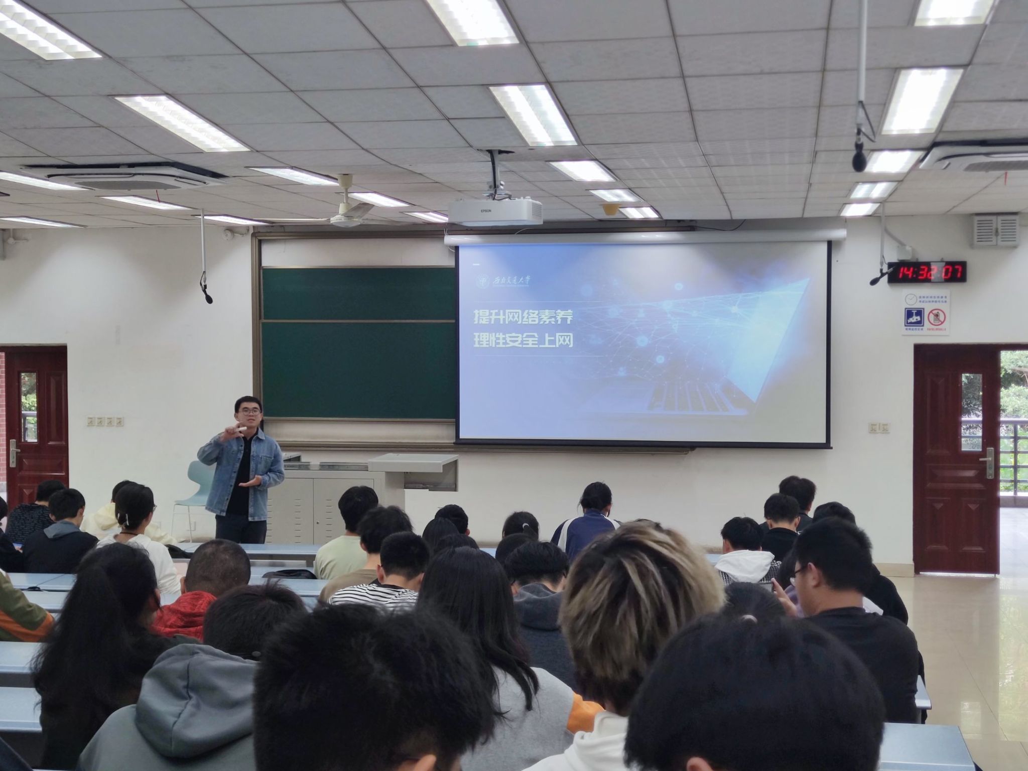 首先郑纪伟老师向同学们阐述了大学生应当具备的网络素养、网络安全基本常识、借助网络学习的能力以及文明上网的自觉性。为加深同学们对网络素养的了解,郑老师通过生动的案例导入,向同学们科普网络法律知识,告诉同学们在网络世界中要把握好尺度,做到有所为、有所不为。同时,郑老师提醒同学们要细心辨别和筛选有害信息,对于网络上出现的一些舆情舆论,需要擦亮眼睛、理性思考,不要人云亦云,更不能推波助澜。不断增强网络文明意识,提升网络文明素养,才能营造更加清朗的网络空间。