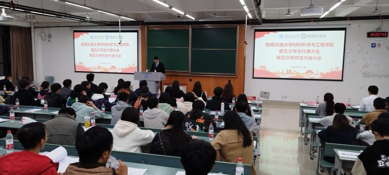 第五次学生代表大会、第五次研究生代表大会在犀浦校区X4352顺利召开。材料学院党委副书记熊钰、校学生会主席团成员陈晓宇、校研究生会主席团成员张语涵,材料学院团委书记王誉静、材料学院团委副书记许欢、兄弟学院学生会主席团成员、材料学院学生会指导老师熊心怡出席大会开幕会,学院学代会代表、研代会代表参加了本次大会。