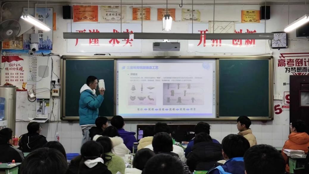 1月16日,实践队前往乐山市井研县马踏中学开展三星堆文化主题宣讲。队员向同学们生动介绍了三星堆文化的丰富内涵,深入解析其在中华文化中的重要地位和广泛影响。多媒体展示和互动问答,激发了同学们对古蜀文明的好奇心。同学们积极提问,展现了对三星堆文化的浓厚兴趣,以及对文物保护的热情。