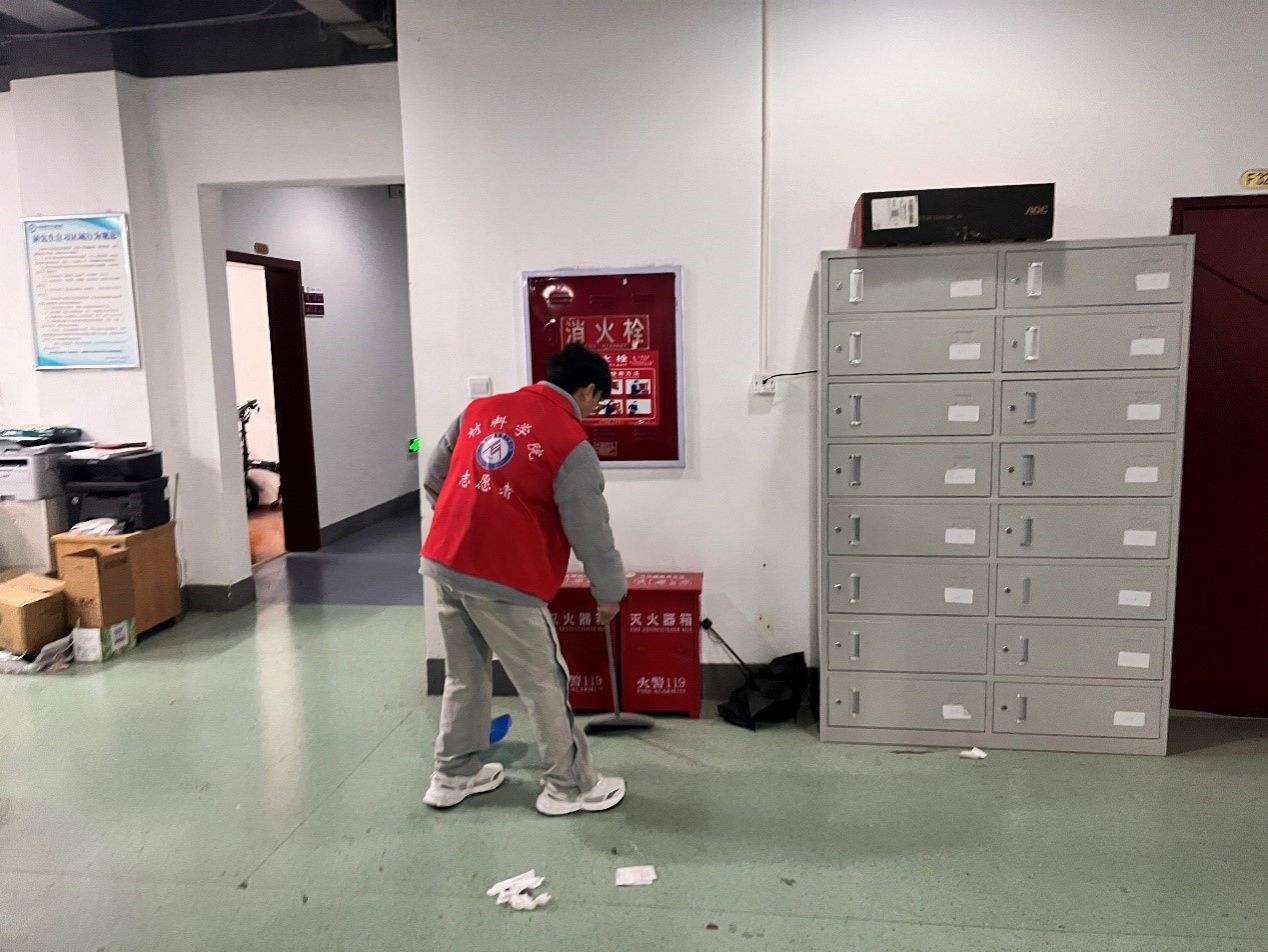 组织材料学院研究生志愿者深入学院进行学雷锋日志愿服务活动,前往学院所在教学楼对自行车棚停放杂乱的共享单车进行了治理,随后对三号教学楼二楼学生工位公共区域进行了打扫,给同学们营造一个干净的学习环境。