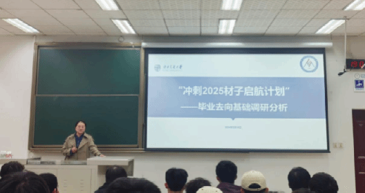为扎实推进2025届学生升学、就业工作,帮助2025届学生全面了解就业、考研形势,明确发展目标,完善个人生涯规划。材料学院本科2021级于3月19日开展“冲刺2025材子启航计划”(四)——毕业去向基础调研分析,辅导员许欢、张若男及2021级全体本科生参加。