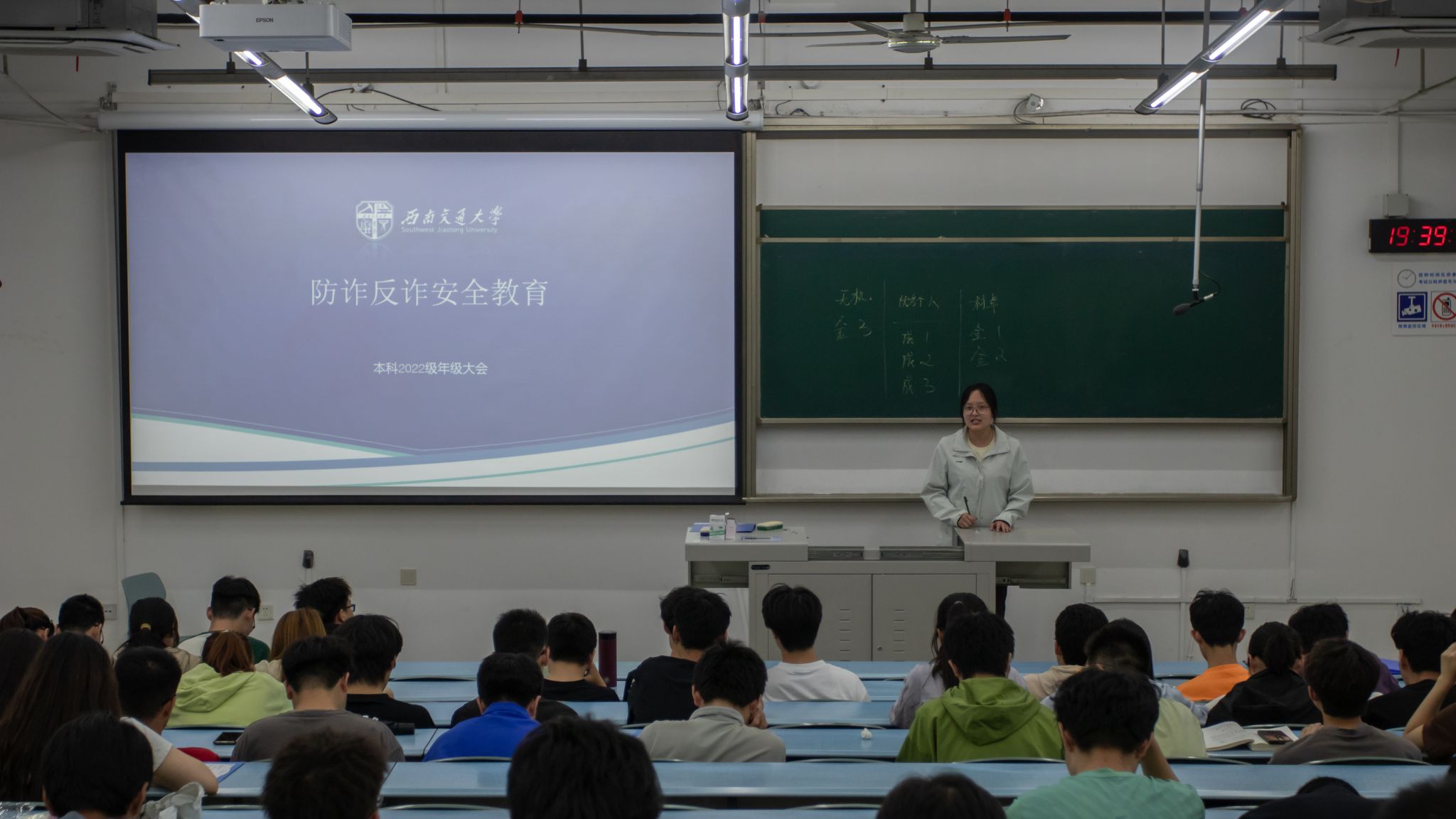 接着,张琬祺为同学们做防范电信诈骗教育,通过案例对现如今的电信诈骗手段做了深入解读。并提醒随着网络技术的发展,AI换脸等诈骗手段防不胜防。要求同学们再次检查核对“蓉城反诈”小程序预警功能是否开启。除此之外,张老师还强调了拒绝网贷、校园贷,树立合理的消费观;同时针对五一假期即将到来,进行出行安全提醒;强调天气转暖,注意宿舍园区安全用电事宜。