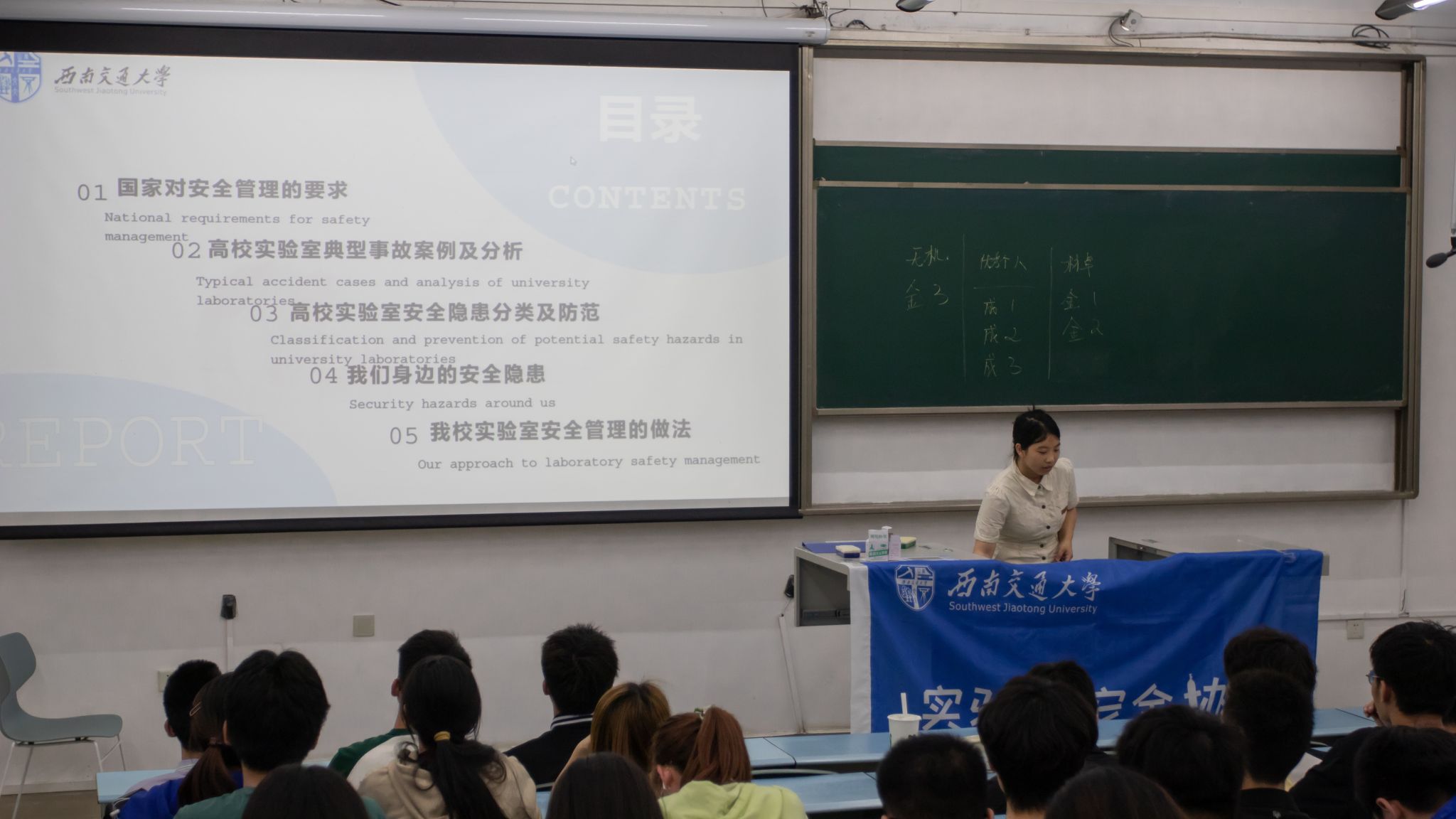 为帮助材料学院本科2022级学生进一步树立安全意识、掌握安全技能,校实验室安全大使团宣讲部部长孙哲萱,带领同学们一起学习实验室安全相关知识,通过对安全生产-高校实验室典型事故案例及分析,危化品、火灾防范等知识讲解,将理论与实际结合,举例实验室常见的安全事故,向同学们说明了实验室安全的重要性,为同学们接下来的实验课以及科创训练打下基础。