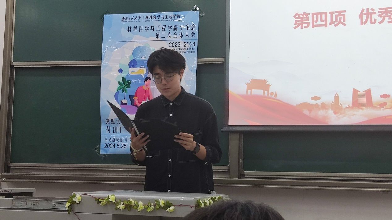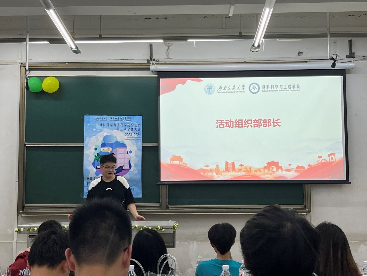 学生会上半年的工作暂时告一段落,为总结过去一年的工作、表彰优秀,促进学生会全体成员的交流,材料学院学生会于2024年5月26日晚举行了第二次全体大会,指导老师熊心怡及学生会全体成员参会。