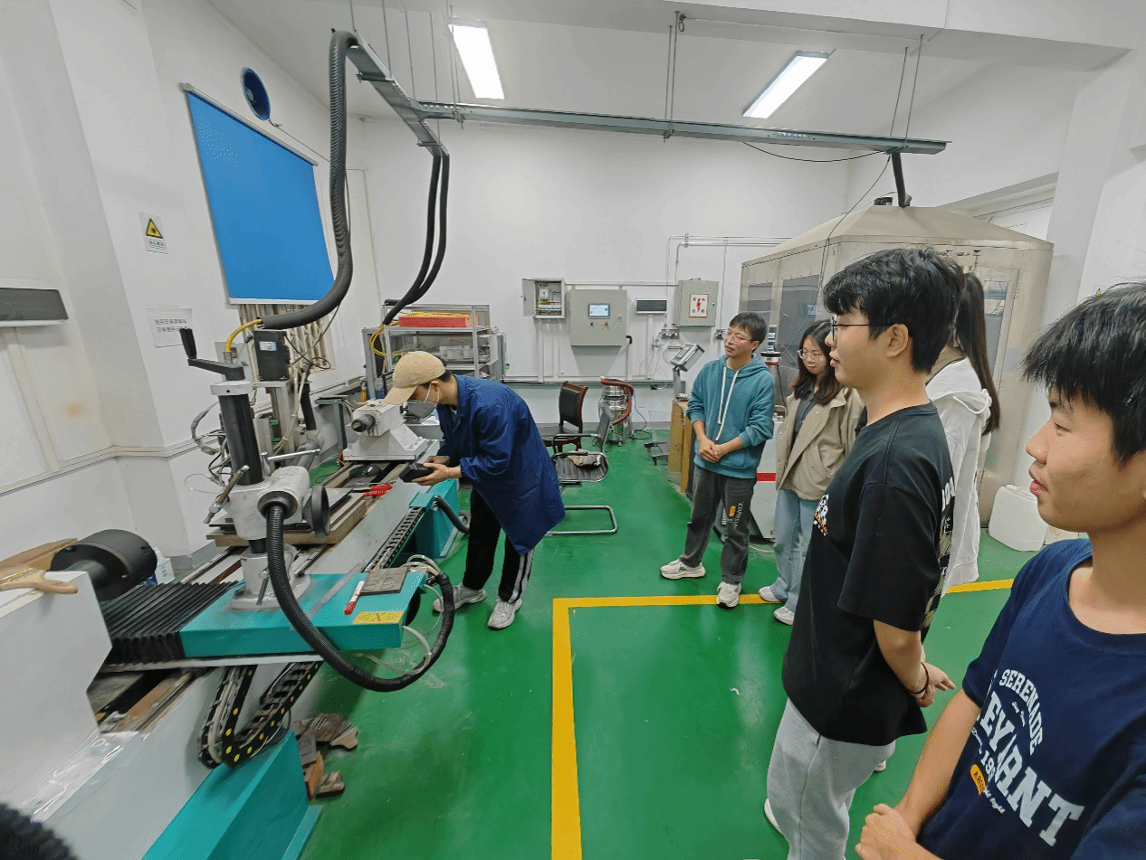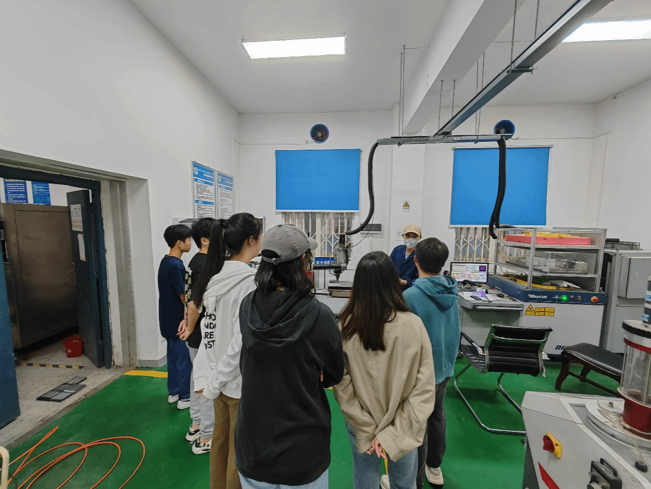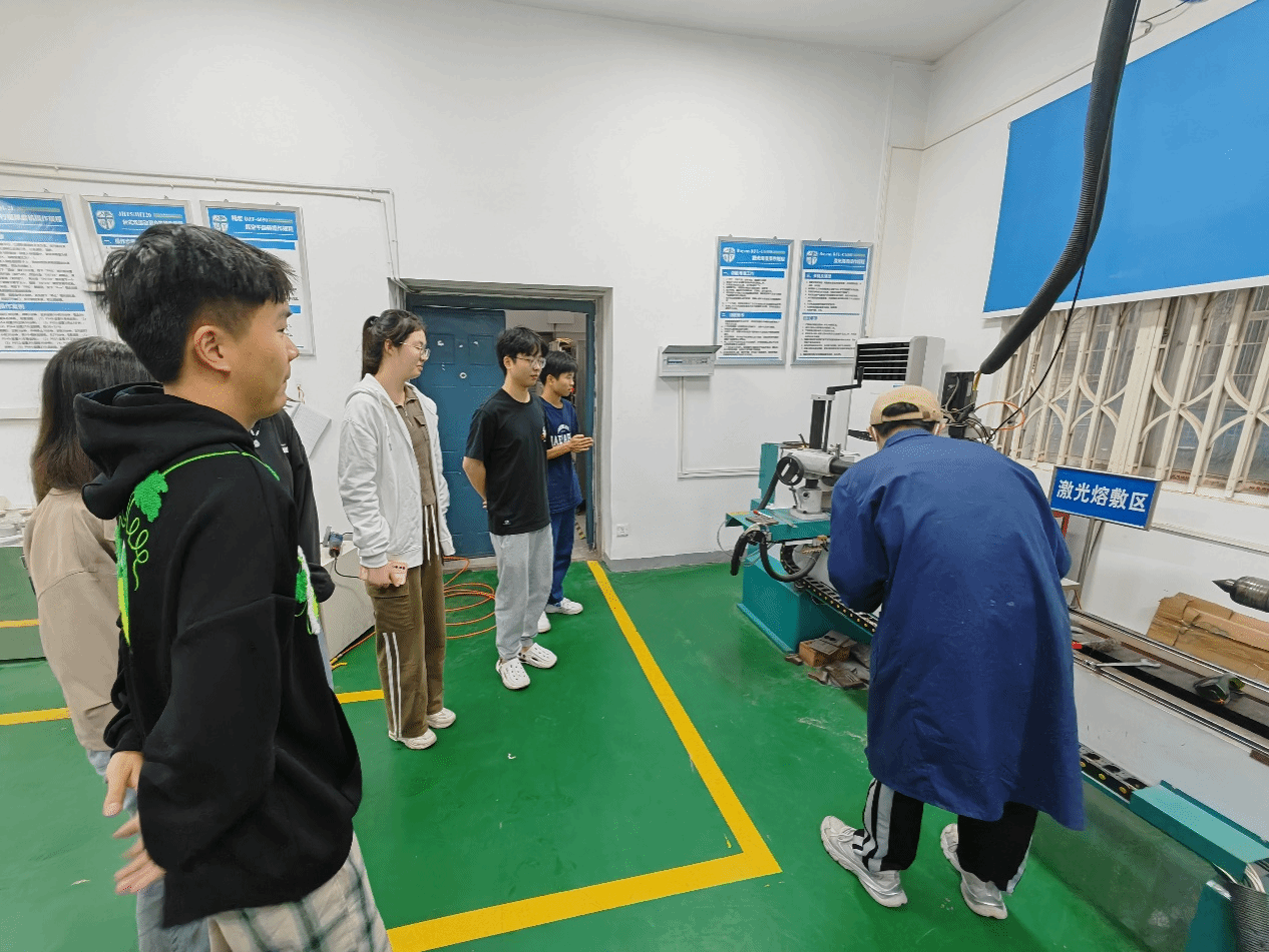 首先进入激光熔覆实验室,各种先进的实验设备吸引了同学们的目光,师兄详细地讲解了熔覆技术的原理、应用以及相关设备的操作方法,并现场演示了一些简单的实验操作。同学们围绕在师兄身边,认真聆听讲解,不时提出自己的疑问,师兄都一一耐心解答。