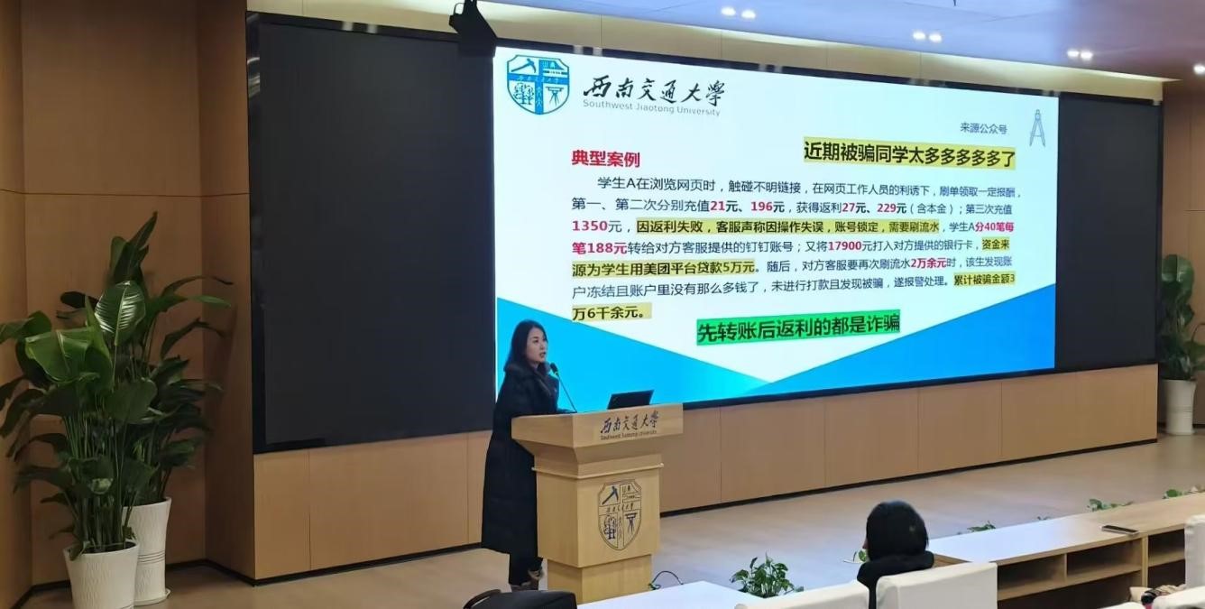 安全问题一直是学校工作的重中之重。会上,辅导员罗丹老师着重强调了宿舍安全、电信诈骗防范以及日常生活安全等方面的内容。从宿舍用电安全规范的细致讲解,到网络电信诈骗典型案例的深度剖析,再到交通安全注意事项与饮食卫生常识的温馨提醒,学校全方位、多层次地为学生筑牢安全防线,确保学生的生命财产安全得到切实保障。