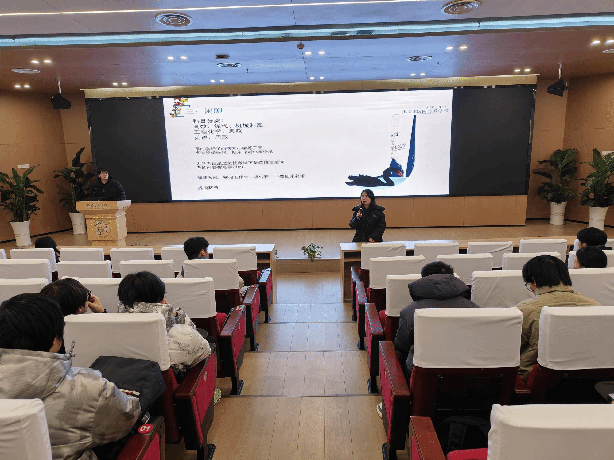 在互动交流环节,同学们纷纷就自己在复习过程中遇到的困惑提问。学长一一耐心解答,并结合具体学科给出了针对性的建议。