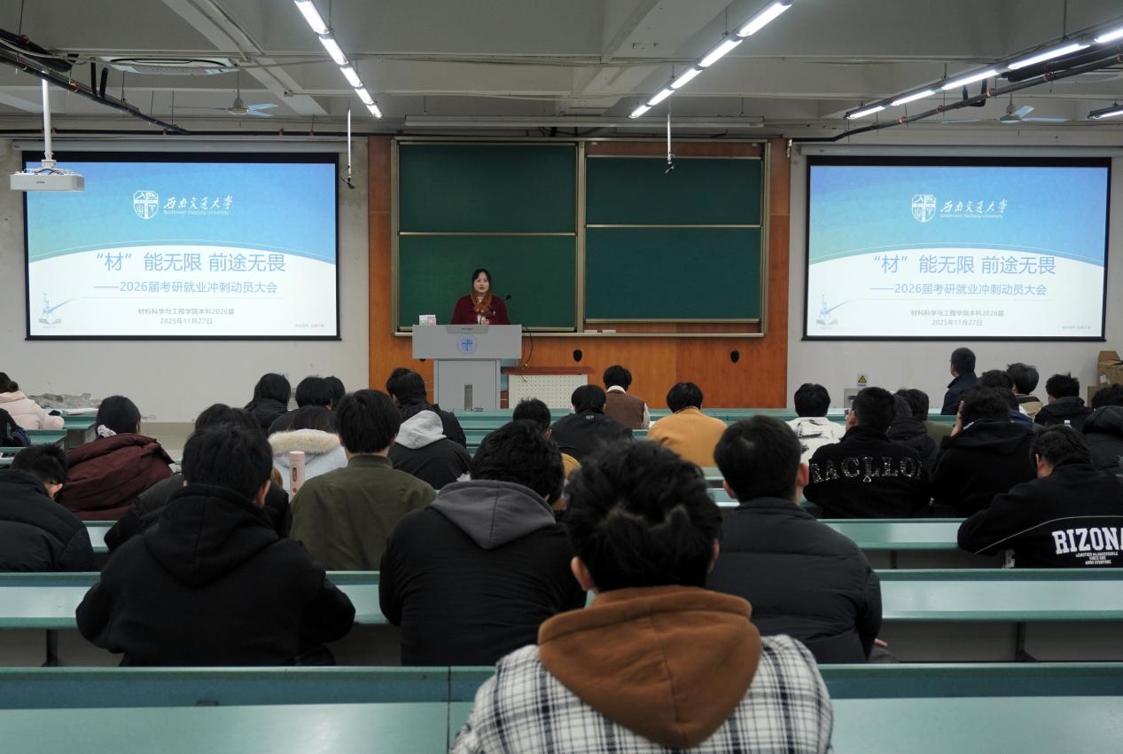 紧接着,熊钰为同学们作了动员讲话。她结合当前就业与升学形势,分析了材料学科学生的独特优势与发展机遇,鼓励大家坚定信心、明确目标。熊书记特别表示,学院始终是同学们的坚强后盾,将持续提供全方位支持,陪伴大家顺利完成从校园到社会的关键过渡。