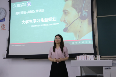 9月20日晚,大学生职业规划讲座在x2431举行。本次讲座以“职业规划,青铜逆袭,offer拿不停”为主题,由世界500强企业培训负责人、优秀讲师罗君老师主讲。讲座目的在于分享经验,答题解惑,指导学生如何规划更清晰的职业蓝图。随着主持人的发言,讲座以一小段“美联英语立刻说”宣传片拉开了序幕。