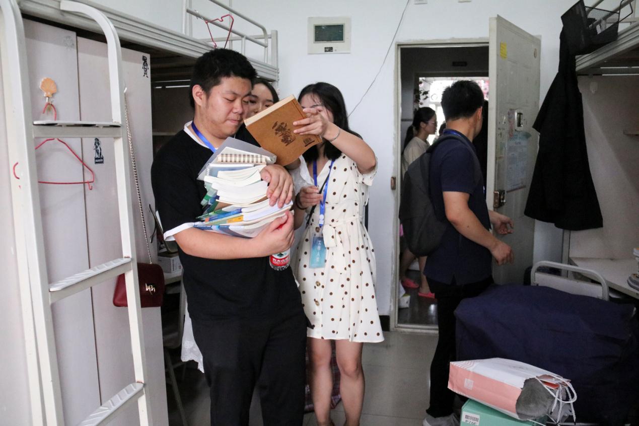 接着,男生寝室进行第二至第四批搬迁。与此同时,高分子二班的同学在搬迁完成后,赶到天佑斋15号楼,协助女生寝室搬运行李。女生寝室在老师、同学们的帮助下很快完成搬迁。