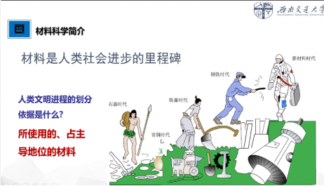 接着,黄老师以材料与人类社会生活的发展为切入,向同学们介绍材料科学。黄老师说,材料是人类社会进步的里程碑,与我们的生活息息相关。