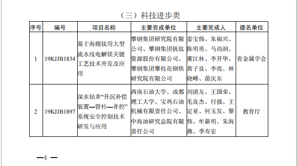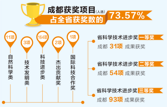 4月21日举行的四川省科学技术奖励大会,公布了2019年度四川省科学技术进步奖获奖名单,244个项目获奖。其中35项成果获四川省科学技术进步奖一等奖,69项成果获二等奖,139项成果获三等奖。