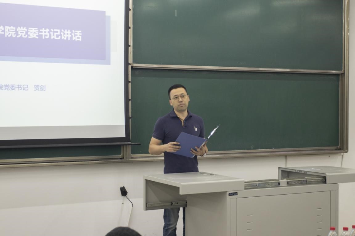 大会第三项,学院党委贺剑书记讲话。首先,贺书记在发言中和同学们一起回顾了交大在铁路领域取得的众多辉煌成就,介绍了学院众多知名专家的突出贡献,并以他们为榜样表达了对新同学的期望。接着,贺书记以疫情为背景,叮嘱同学们要勇担时代重任,让自己的青春奋斗和民族的伟大复兴同频共振。最后,贺书记以学长身份,向同学们提出希望:“第一,珍惜亲朋;第二,野蛮体魄;第三,强大内心;第四,热爱同学;第五,规划未来。”贺书记的声声叮嘱和殷切希望饱含深情,代表了全院教职工对新同学的欢迎和关爱。