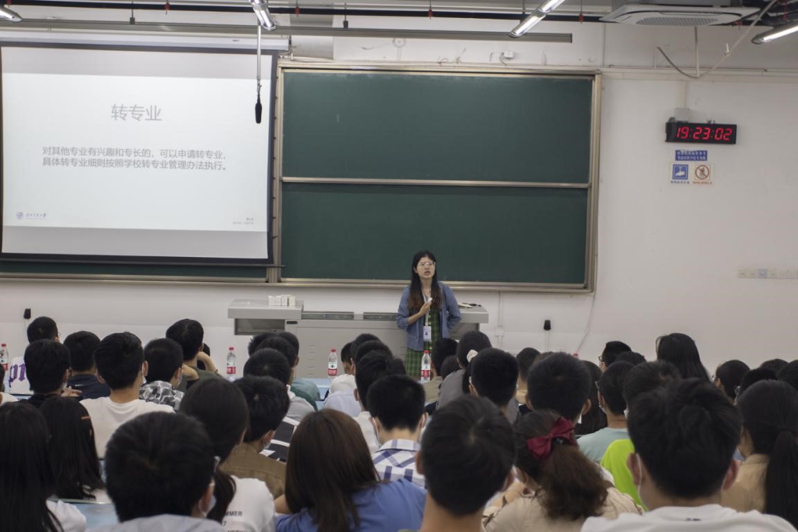 三位学长讲完后,代宇欣老师对以上内容作了强调和补充,叮嘱2020级新生在大学中要养成自律的好习惯,不仅要在生活中自律,还应该在学习上自律,以适应大学的学习生活。