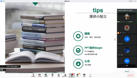 演讲与口才协会于9月20日15:00-16:00通过腾讯会议平台开展了演讲与口才基本技巧的培训活动。