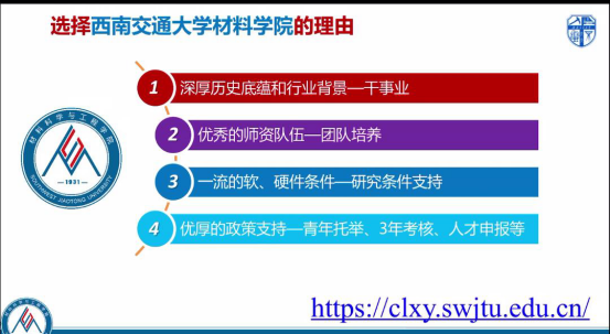 随后,冷永祥副院长介绍了学院主要研究方向,展示了材料学院雄厚的教学科研实力,诚挚邀请优秀学者加盟材料学院,共谋发展。