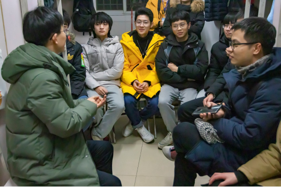 为了方便交流,走访的老师们和同学们齐聚一间寝室,为这次跨年增添了许多热闹与欢快。
