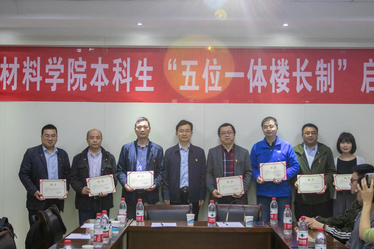 本科生宿舍首批楼长聘任及“五位一体”楼长制工作启动仪式于X2128会议室正式举行。学院院长朱旻昊、党委书记陈勇、党委副书记章春军、副院长李涛、副院长冷永祥、研究生教育工作负责人王勇、本科教学工作负责人蒋小松、工会主席王良辉、材料科学与工程国家级实验教学示范中心常务副主任刘艳以及本科生辅导员、部分学生党员、楼长助理代表等参加启动仪式。学工组副组长黄德明主持启动仪式。