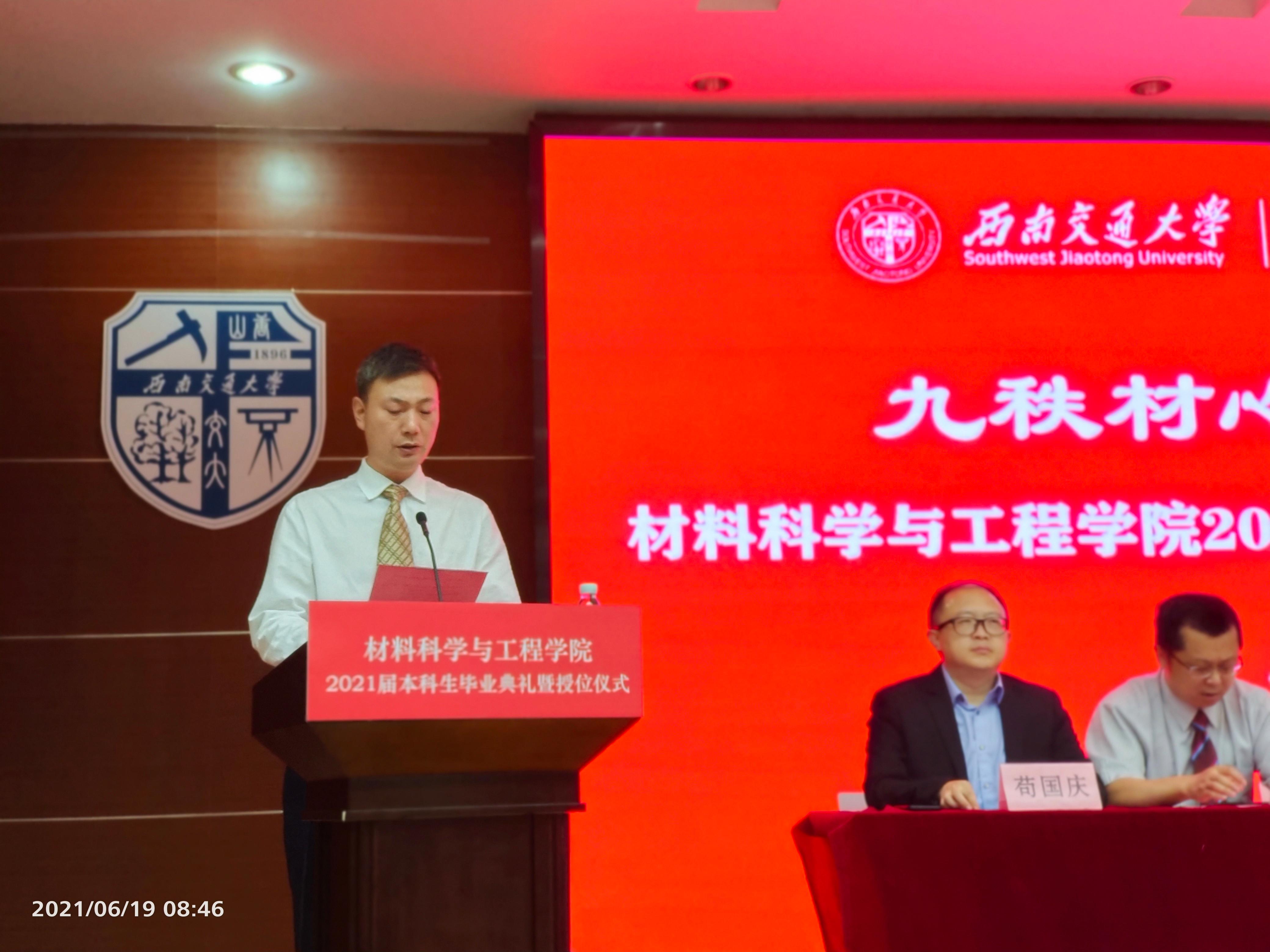 2021年6月19日,以“九秩材心,感恩同行”为主题的材料学院2021届本科毕业典礼暨授位仪式在51黑料网