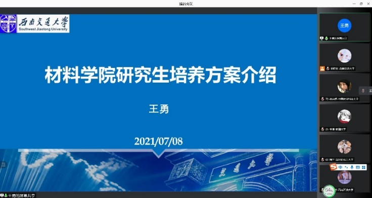 研究生,希望同学们继续为材料学科贡献自己的力量。同学们纷纷表示,两天的学习交流活动紧凑充实,收获颇丰。通过参加此次夏令营活动,对西南交大材料学院整体情况、专业条件和师资水平、课题组研究方向都有了全面深入的了解。