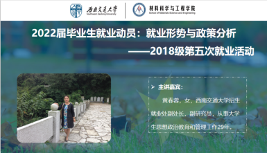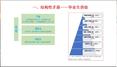 黄春蓉副处长长期从事大学生思想政治教育工作,在就业指导与就业管理方面有着丰富的工作经验。在黄德明老师向与会师生简要介绍黄春蓉副处长后,黄春蓉为大家带来2022届就业形势与政策分析。