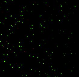原图(激光共聚焦显微镜观察水凝胶中细胞分布及死活荧光染色结果)