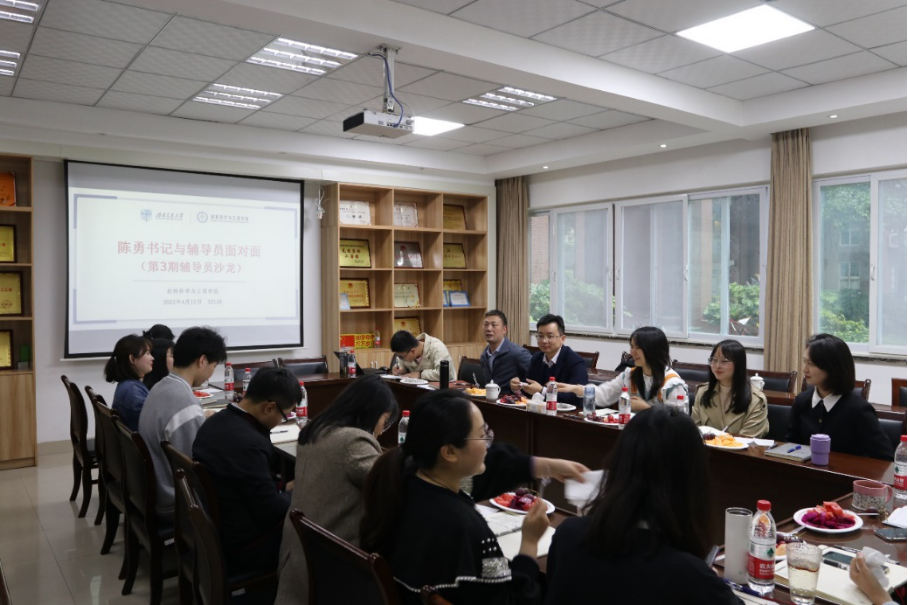 2022年4月15日17:00,材料学院辅导员沙龙在犀浦校区X2128会议室正式举行。学院党委书记陈勇应邀出席,同学生工作组全体辅导员进行了一场温馨愉快的“面对面”交流活动。本次活动由学院党委副书记章春军主持。
