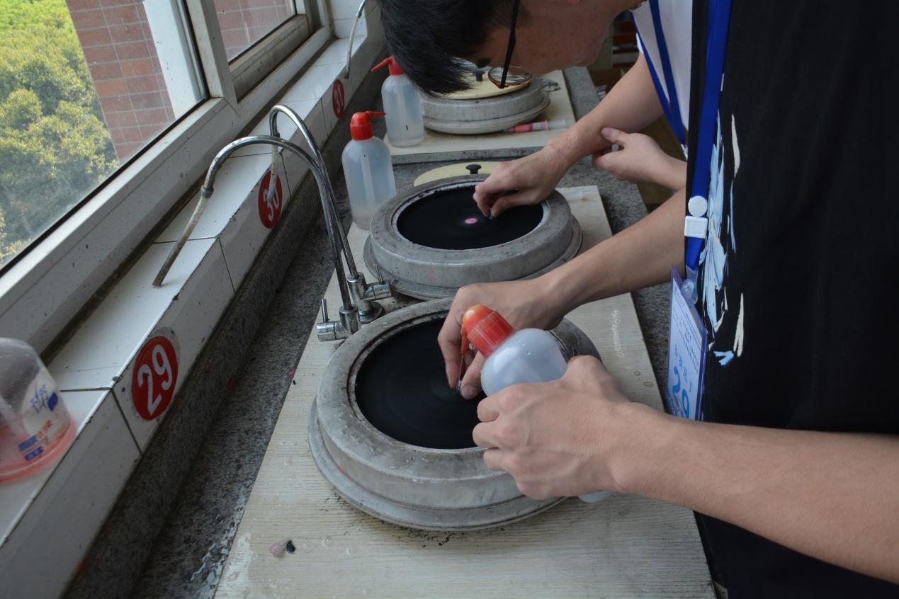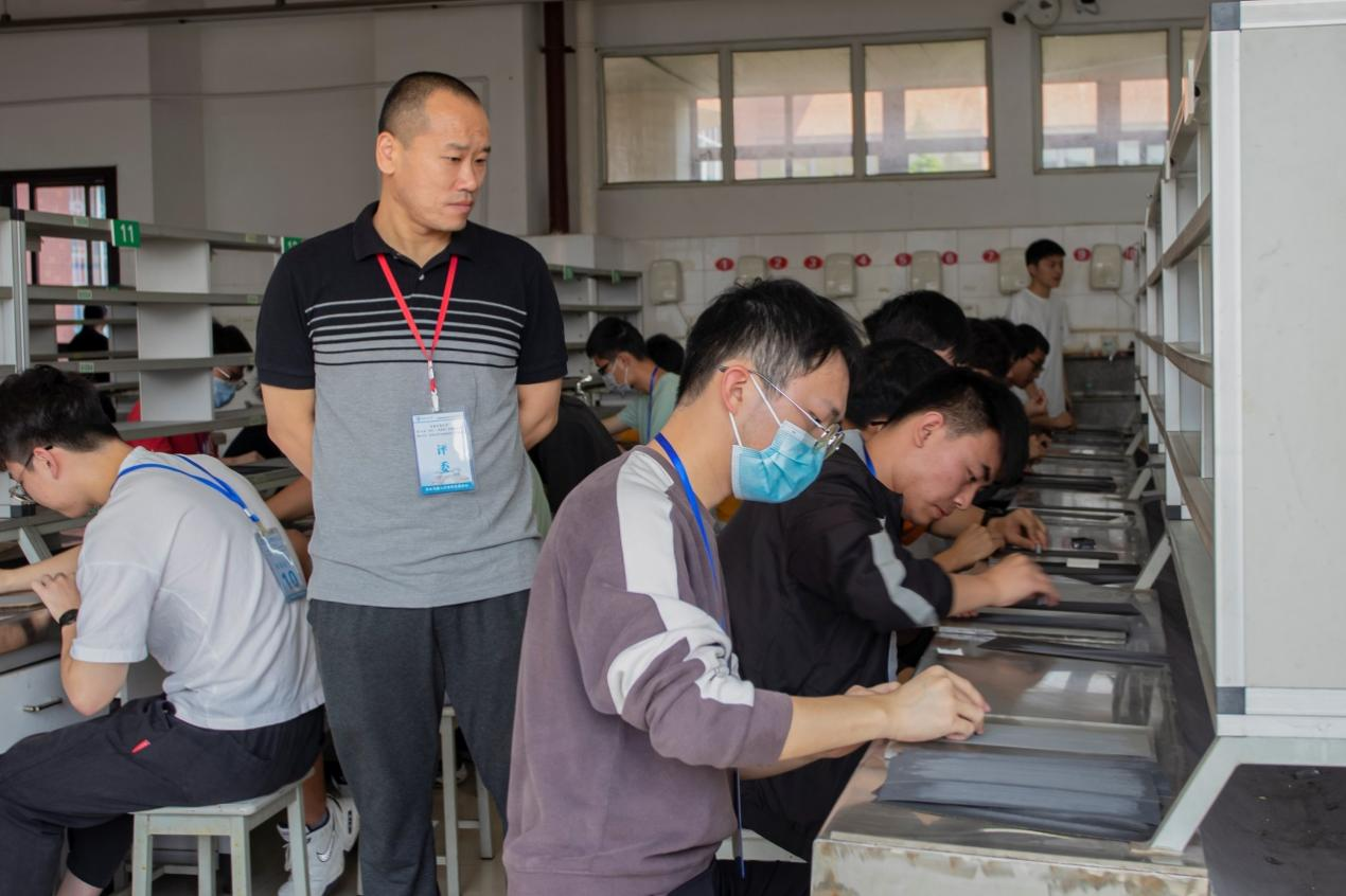 我校170名参赛选手和7名校外参赛选手被分为六组进行比赛。每组选手依次排序签到,领取比赛样品、比赛耗材入场。
